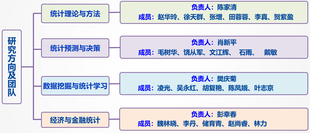 统计学系现有教师37人,其中高级职称25人,博士生导师3人,硕士生导师15人,其中省部级人才计划入选者1人次,交通部直属高校首批优秀青年骨干教师1人,青年教学名师6人。同时,依托应用统计专业学位点,组建校内导师和企业导师相结合的导师队伍,建设了一支校级应用统计专业学位研究生指导团队。